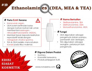 🚫 Dalam rumusan kosmetik, DEA boleh bertindak balas dengan bahan-bahan lain untuk membentuk karsinogen yang dipanggil nitrosodiethanolamine (NDEA) yang diserap melalui kulit.